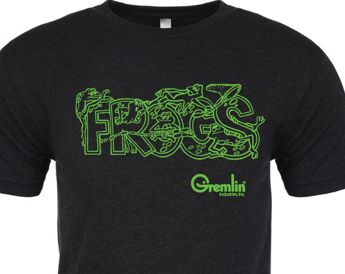 Developed by Gremlin right before they were bought by Sega, Frogs (1978) is a lost gem of the bronze age arcade. Timed game where you play a frog trying to capture bugs and butterflies with your tongue. Be careful to stay on the lily pad and avoid the water. Years later the game concept was lifted for Intellivision's Frog Bog. The unique arcade cabinet features an eye-popping reflective swamp background with realistic bug sounds that make for an immersive environment. If you ever get the chance to play the game in a cabinet, do so! In the meantime, this shirt looks great and makes for a nice conversation piece, "No, it's not Frogger..."